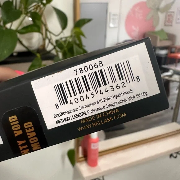 Bellami infinity weft 16” 60g Color in espresso smoke show. Root is about a level 5/4. These are definitely a pretty ashy blonde. Ordered for a client and they were too short. Didn’t return in time and just don’t need them!! NEW!!!!