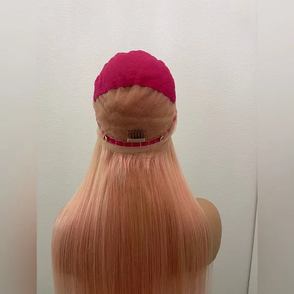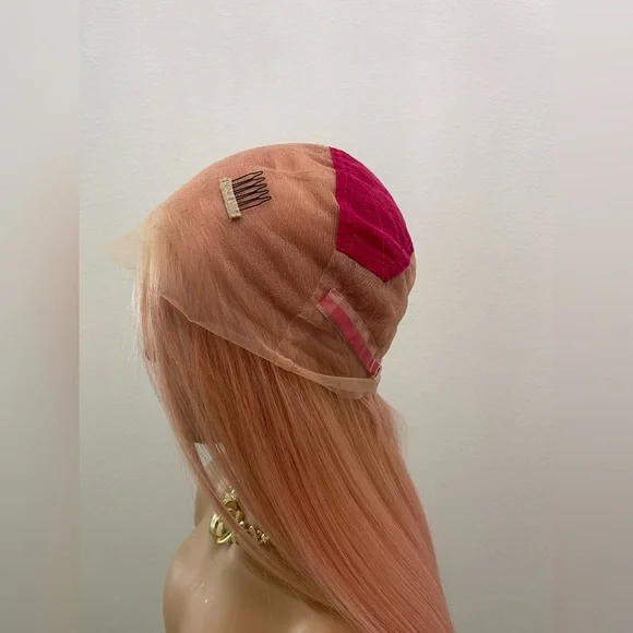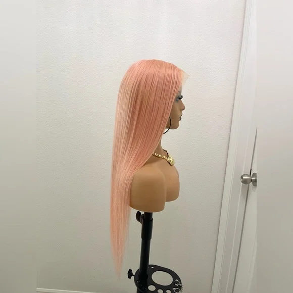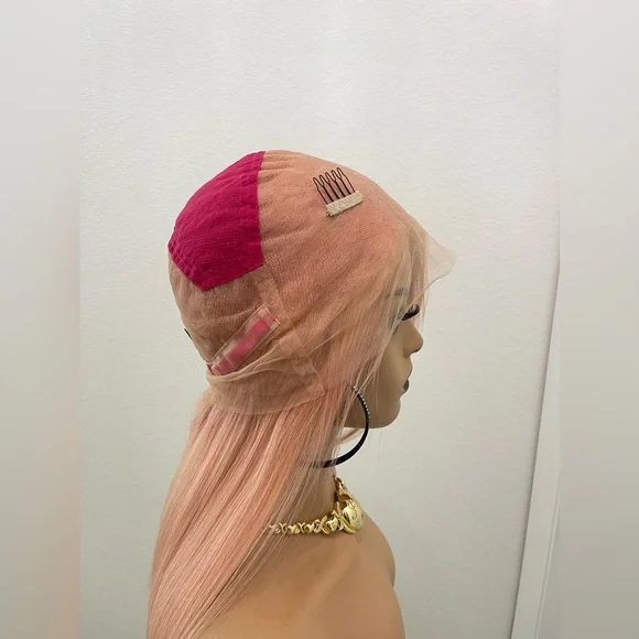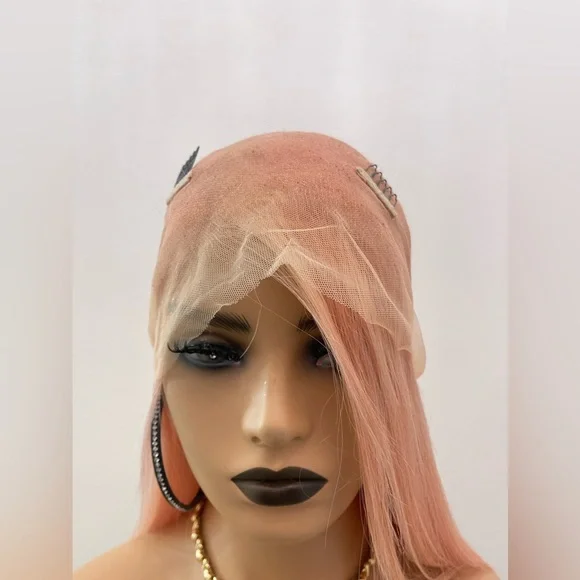New! 22” Transparent Lace, Full Lace (All Lace, No wefts) Customized Colored: Pink, Straight Human Hair WigHair was lifted from natural color to blonde then colored pink, Please note: There will or may be imperfections due to the coloring process such as blonde showing etc. I always do full Quality Control inspections and I let you know what I see when styling the hair. Can be worn Glueless has combs and adjustable straps.We don’t recommend bleaching already bleached/colored wigs it may damage the hair due it already being bleached, and may not bleach due to the coloring unless you use a dye remover first, you can dye it other darker colors that don’t need a lifter or bleach, and you can flat iron, curl, or wash.