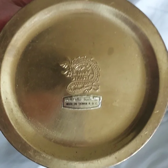 Vintage Arnet Ivory Dynasty Vase With Brass Base And Trim