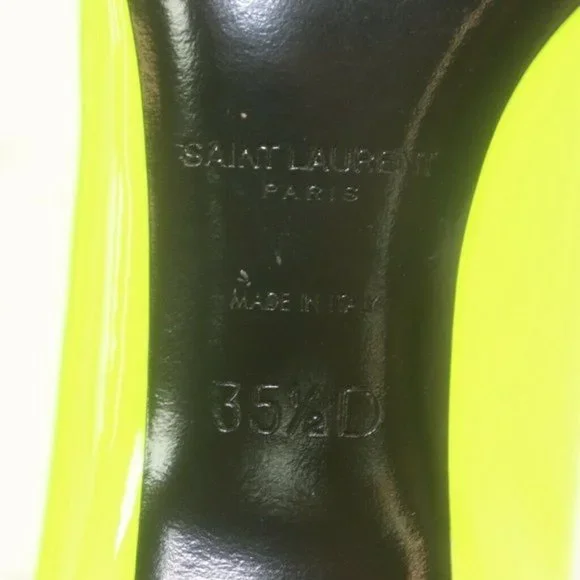 Yves Saint Laurent Kiki PumpsMain Color : YellowMaterial : Patent LeatherSerial Number : 583026Size : 35.5 EU/ 5.5 USMaximum Width : 7.5 cm (approx) / 2.95 inch (approx)Heel Height : 5.5 cm (approx) / 2.16 inch (approx)Mens/Ladies : WomenCountry of Manufacture : Italy