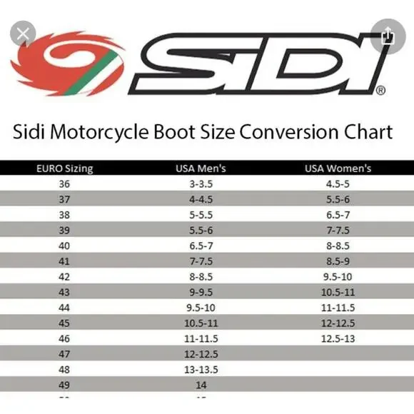 Sidi Women´s Black Leather Mid Calf Block Heel Italy Racing Boots US 8.5-9 EUR 41Brand: Sidi Department: Women Type: BootStyle: Racing BootsColor: Black Size: US 8.5-9Pattern: SolidClosure: Hook & LoopTheme: Motor SportsFeatures: Comfort, Breathable Occasion: CasualSeason: All SeasonAccents: LogoShoe ShaftStyle: Mid CalfToe Shape: Round ToeCondition: Pre-owned, Minor wear overall. Some scuffs to toes. Some spot of gunk on the soles I could not fully get out. Minor piling to interior. Lots of life left in the great boots.Measurements:Shaft Height: 11 in