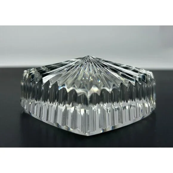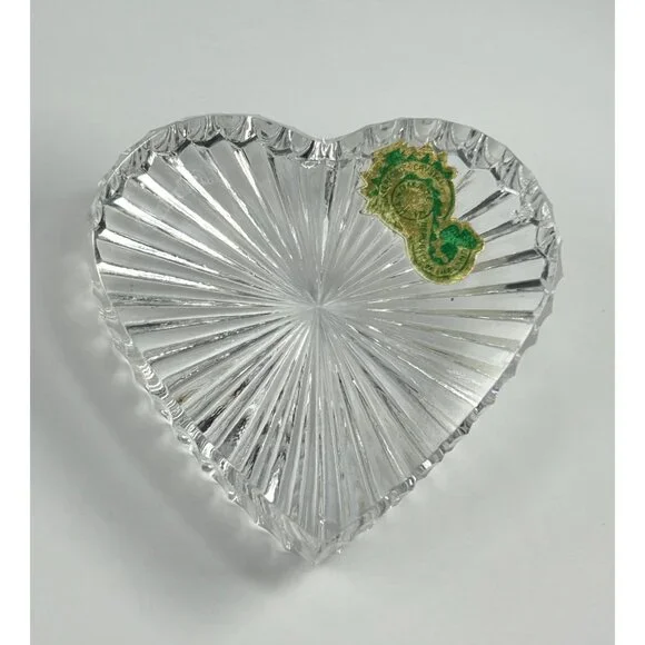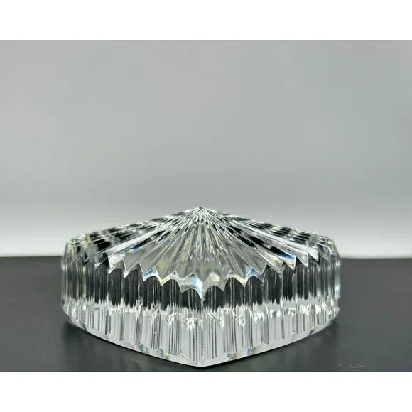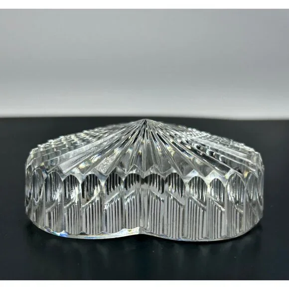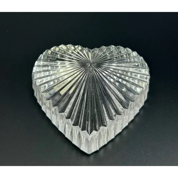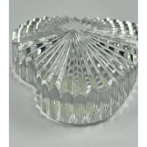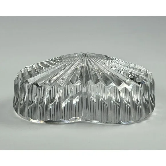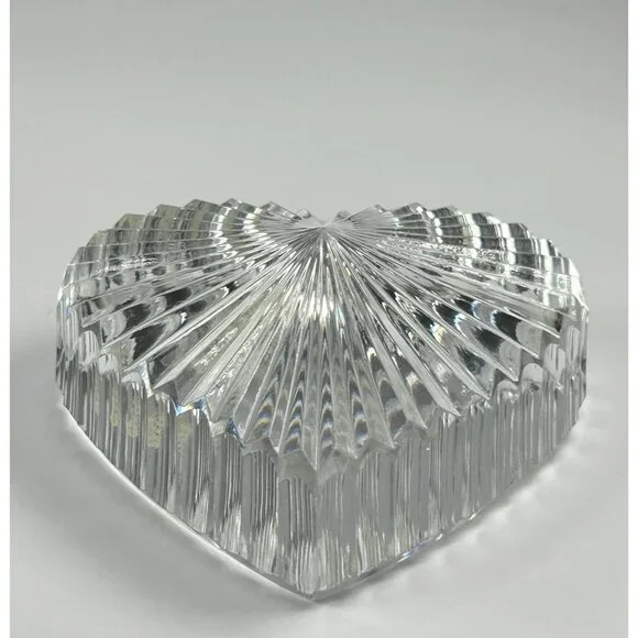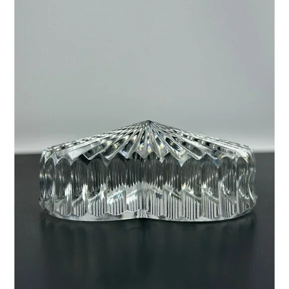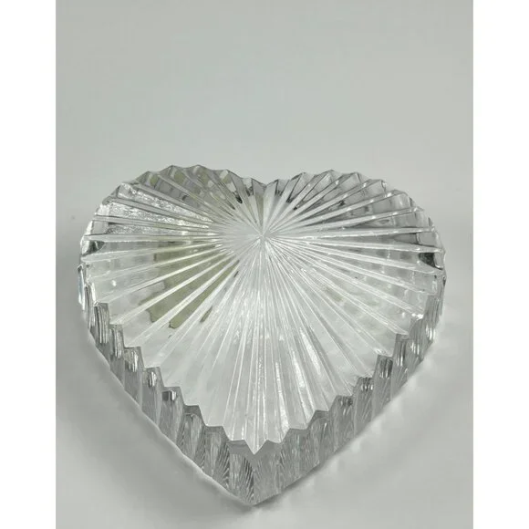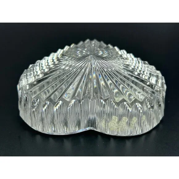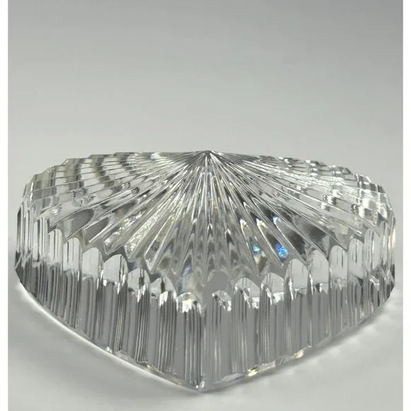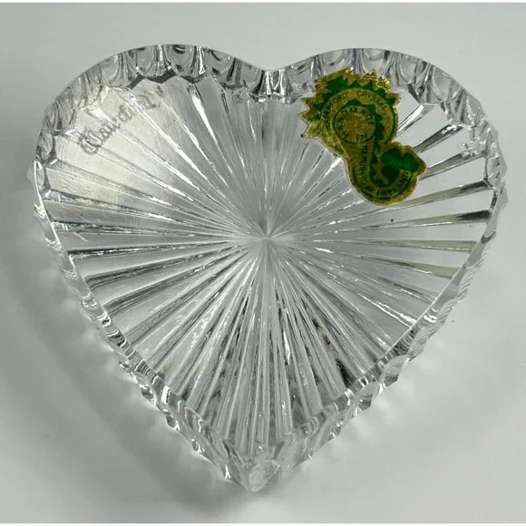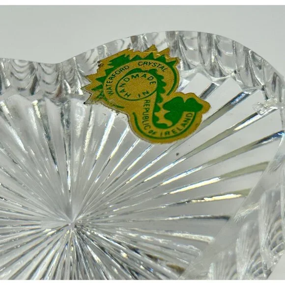 In excellent vintage preowned condition with some flea bites/chips to be noted in photos. Crystal Glass Co. Handmade in The Republic of Ireland• The gothic script gold and green sticker help date this piece! Dates before year 2000 and after 1940s when Ireland established itself The Republic of Ireland.• Etched in classical handwriting “”• Intricate cut ribbed glass design with radiant detailing• Heart shaped and handmade • Can function as a paperweight or add it to your collection• Durable and timeless lead crystal clear glass construction• Vintage charm for home décor enthusiastsLength: 2.75"Width: 2.5"Thickness: 1"# #vintagecrystalglass #crystalglass #waterfordcrystal #waterfordcrystalglass #vintagewaterford #waterfordcrystalco #waterfordpaperweight #heartpaperweight #heartshape #handmade #handmadepaperweight #handcutpaperweight #crystalclearglass #waterfordcrystalpaperweight