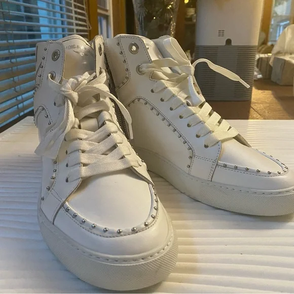 Zadig & Voltaire Women´s ZV1747 High Flash Studded Trim High Top Sneakers new 10