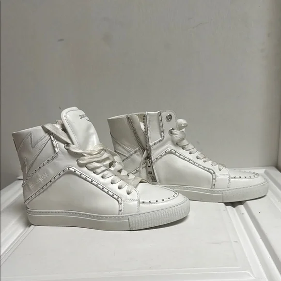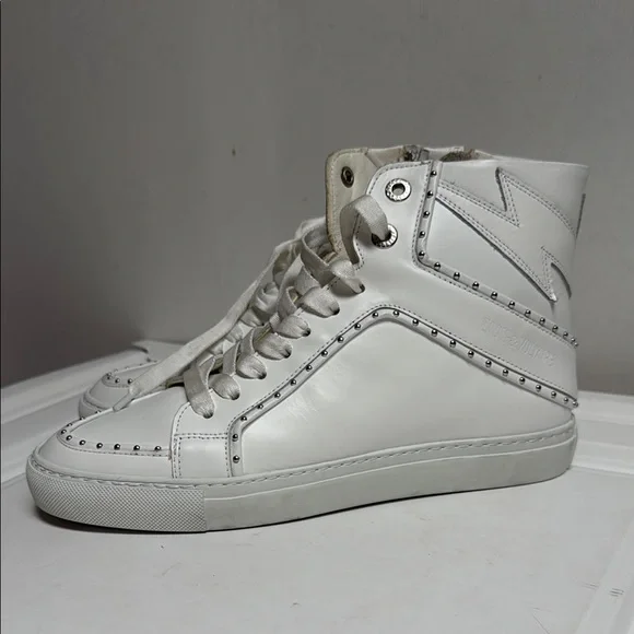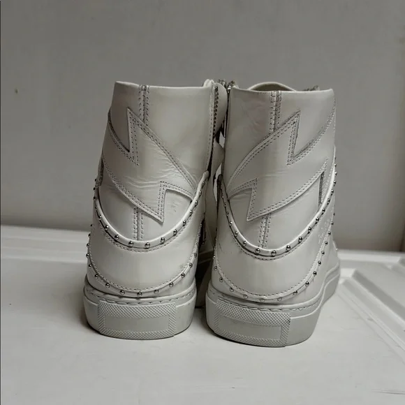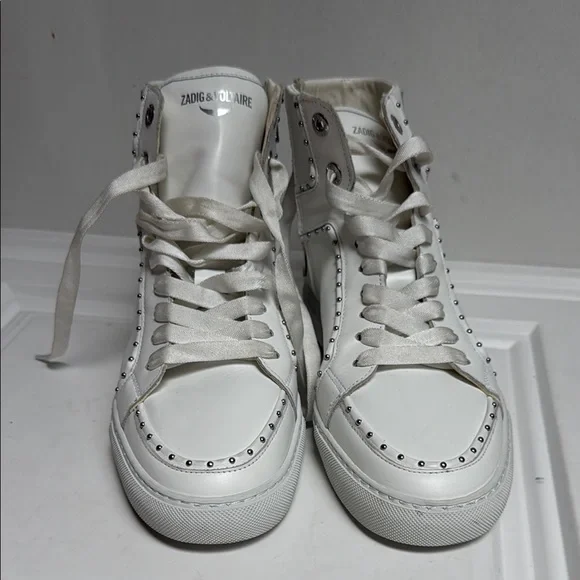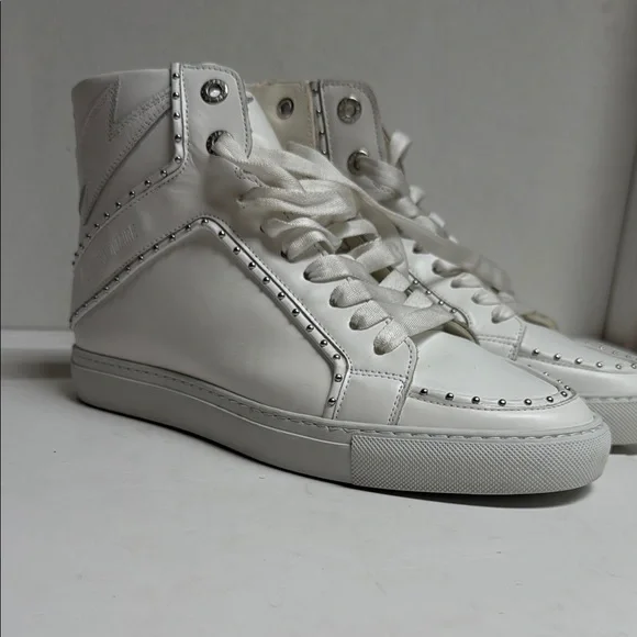 Like new without boxBarely choice onExcellent condition Size 9 women Stylish white high-top sneakers with studded details. Perfect for casual wear.