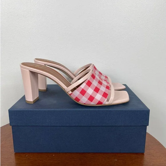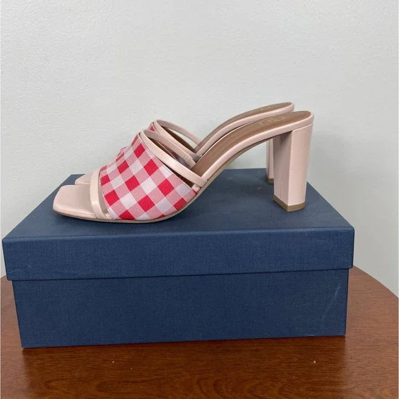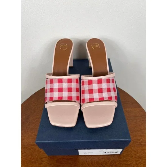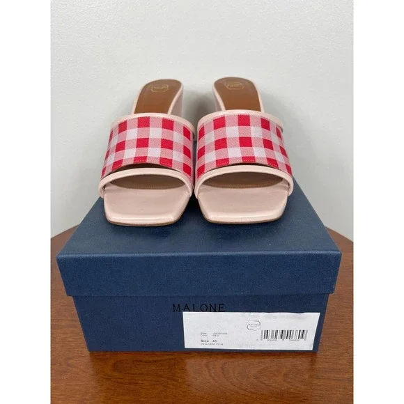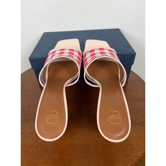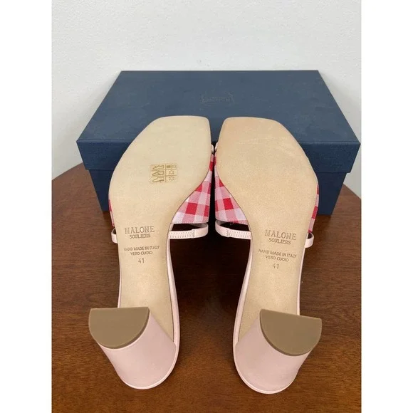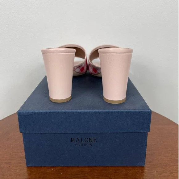 New Malone Souliers Demi MulesFabric: JacquardGingham checkElastic inset at instepLeather footbedCovered chunky heelLeather sole with rubber heel capMade in ItalyHeel: 2.75in approx.