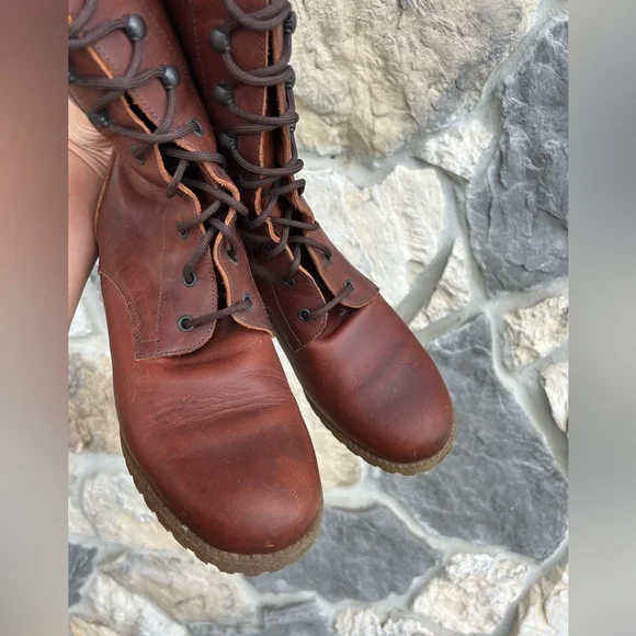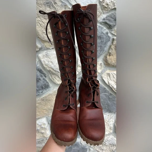 Vintage J. Crew Campus Boots Sz 10 Lace Up Tall Brown Leather Equestrian RARE!