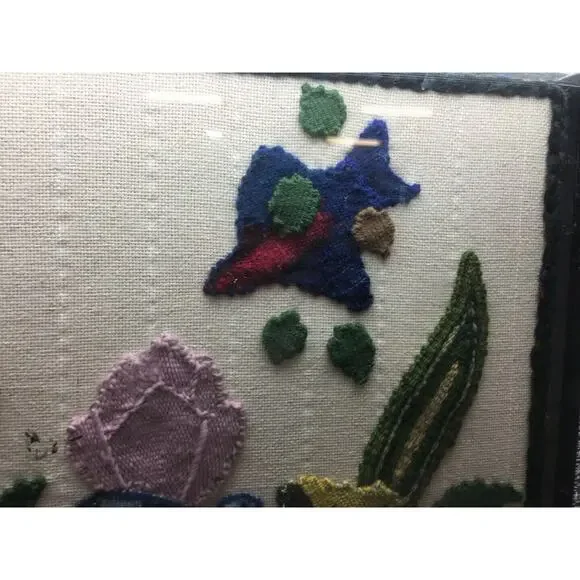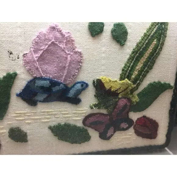 LARGE CREWEL EMBROIDERY SCENE APPLIQUED ONTO AIDA CLOTH BEADS PLEXIGLAS FRAME * DetailsLarge Crewel Embroidery Scene Appliqued onto Aida Cloth Wool & Beads Plexiglas FrameLooks like a pond scene with a turtle, butterflies and more. Braided edge. All crewel pieces are stitched in wool.21"x19"Good conditionro5948 * PaymentWe accept all forms of payment from PayPal which includes American Express, eCheck, Bank Transfer, MasterCard and Visa. Please make payment promptly after winning our Auction or Fixed Price listing. Thank you. * ShippingOur committment is to ship within 3 business days from the time of payment. * Return PoliciesIf not satisfied please return for a refund. If the item was not as described a full refund will be given otherwise, a 20% restocking fee will be charged.Powered by iVendere. All rights reserved.