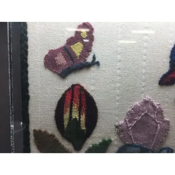 LARGE CREWEL EMBROIDERY SCENE APPLIQUED ONTO AIDA CLOTH BEADS PLEXIGLAS FRAME * DetailsLarge Crewel Embroidery Scene Appliqued onto Aida Cloth Wool & Beads Plexiglas FrameLooks...
