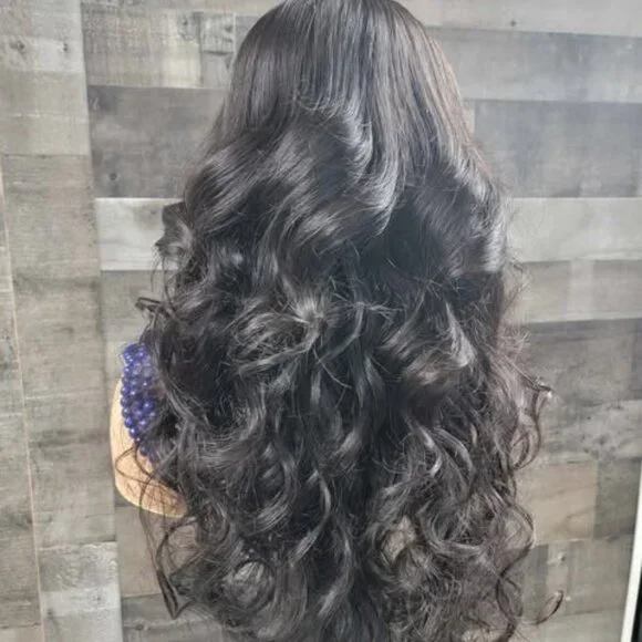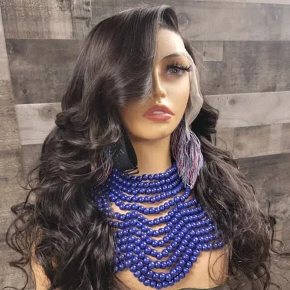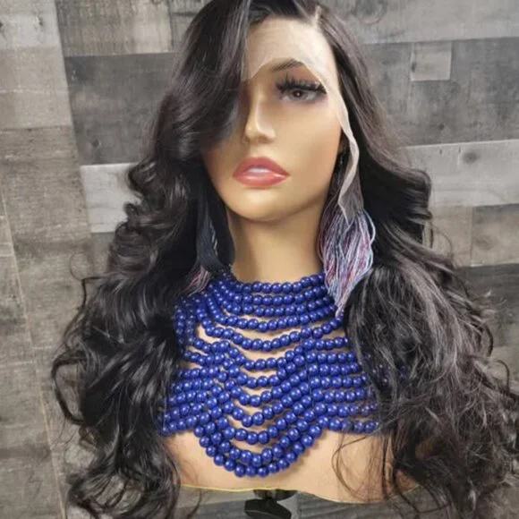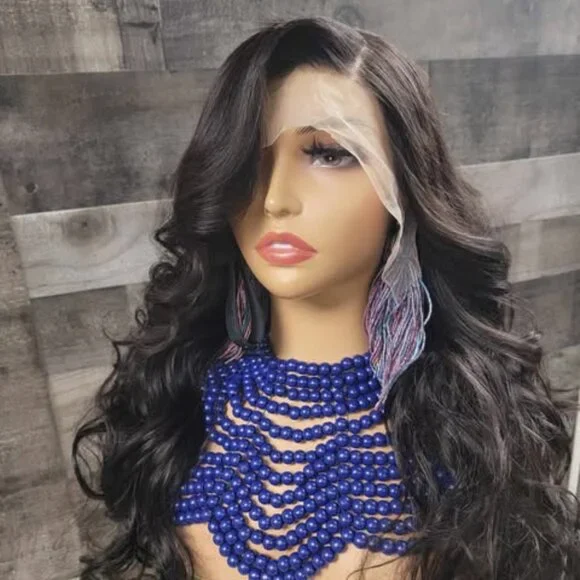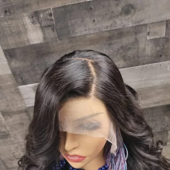this girl is 26 inches long natural color 1b 13x6 lacefrontal human hair .she is average size cap with adjustable straps