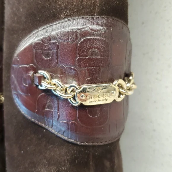 Pre-owned but still in great condition 100% Authentic and luxurious Beautiful Brown soft Suede Leather tall bootsRound Toe bootsSize : 6B3" heel height **no box nor dust...