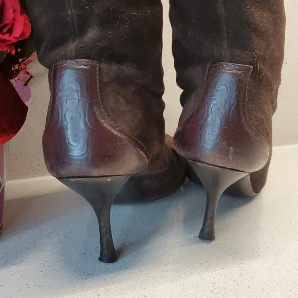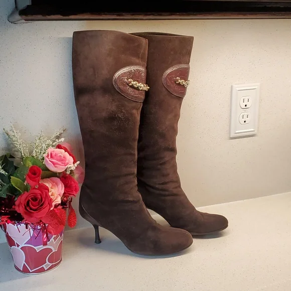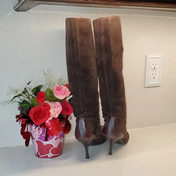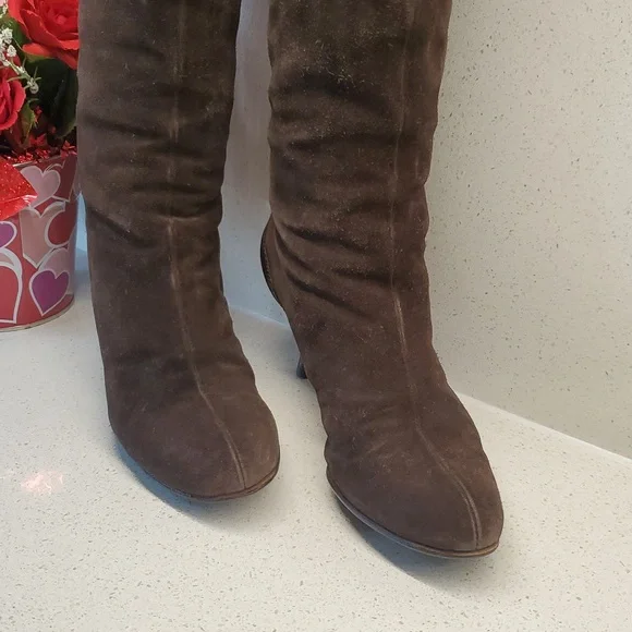 Pre-owned but still in great condition 100% Authentic and luxurious Beautiful Brown soft Suede Leather tall bootsRound Toe bootsSize : 6B3" heel height **no box nor dust bags**Used but still in great condition and lots of life left in them Please see pictures up-close for best description of item being sold and ask questions****Same or next day shipping****....