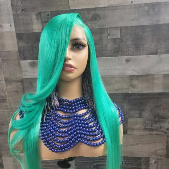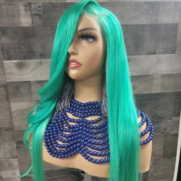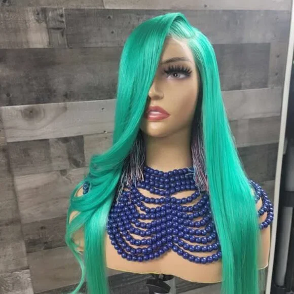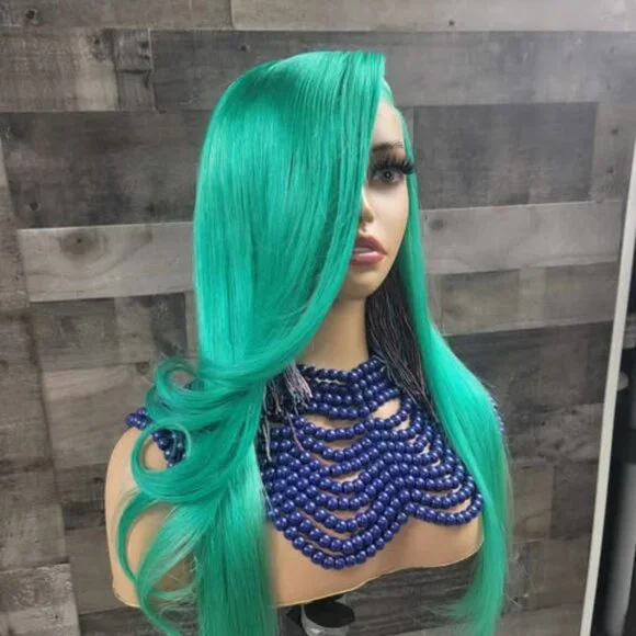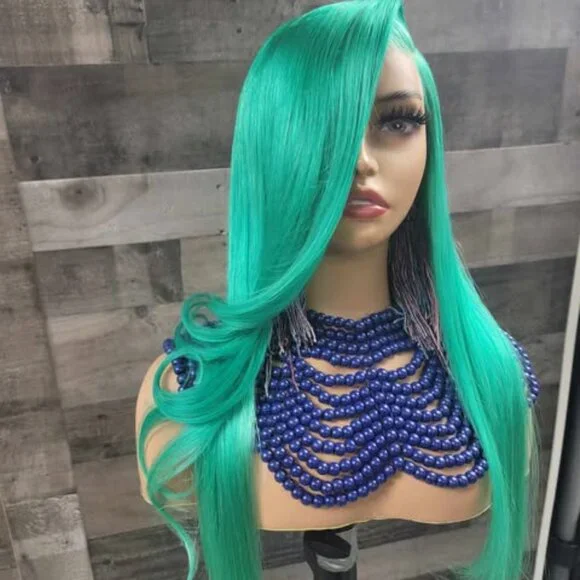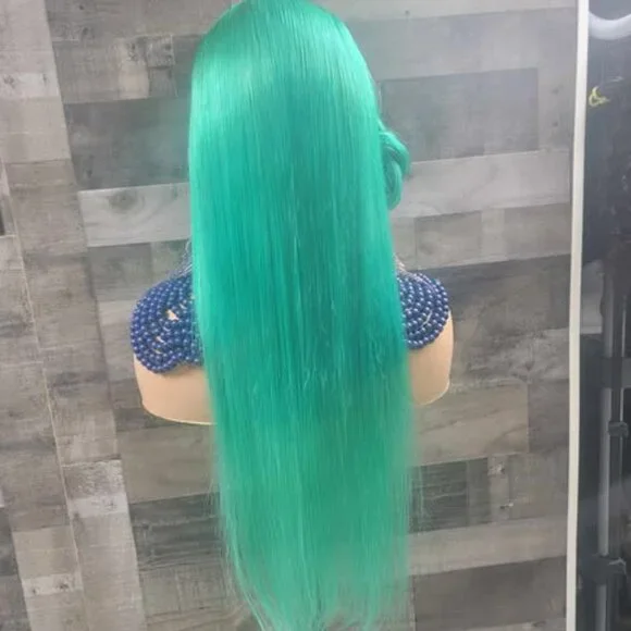 mint green colored wig