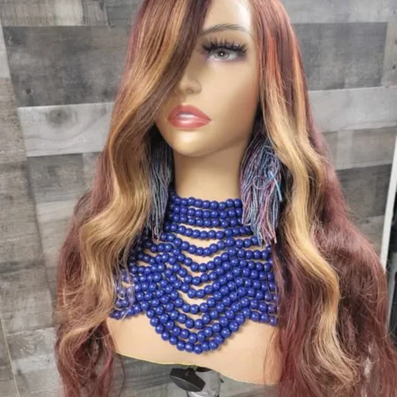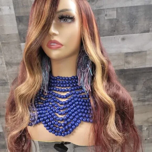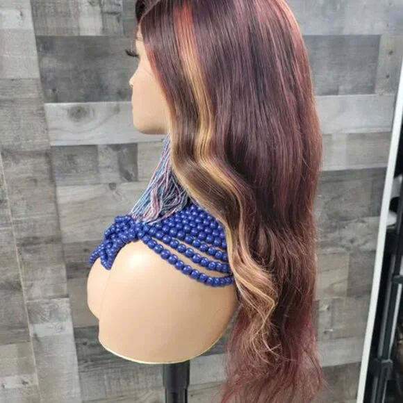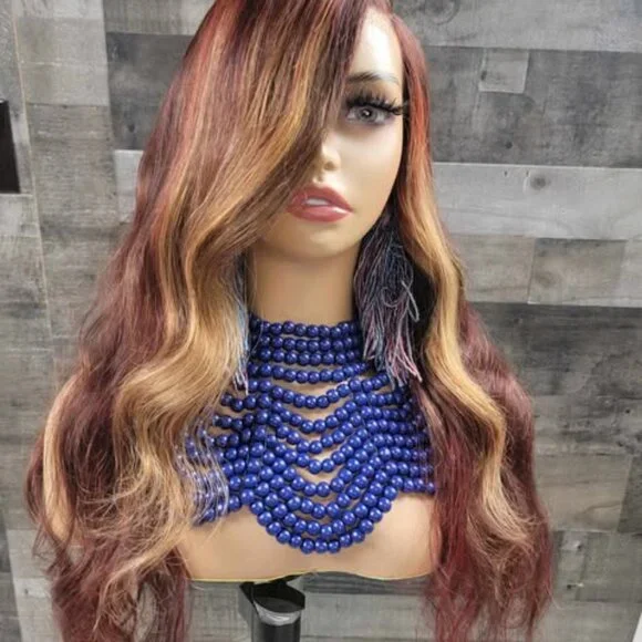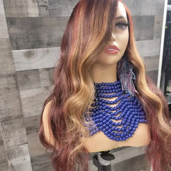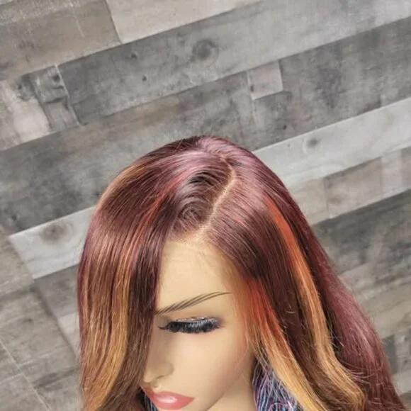 26 in auburn red and brown wig