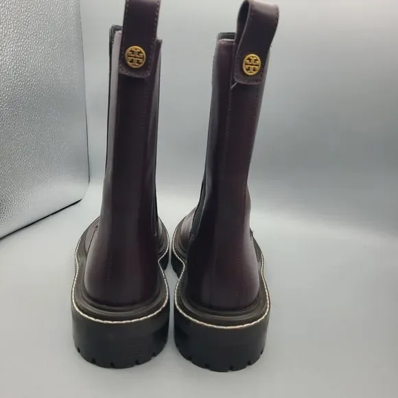 Tory Burch ´Benton" pull-on boots Chelsea style Size 7.5 M New in TB box ( not from the exact pair) $428 Burgundy leather upper with Gold-Tone Hardware Logo Accent And...