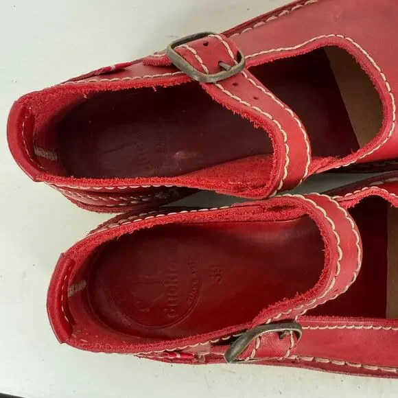 Duckfeet Himmerland Mary Jane Flats Women´s 8 Red Leather Buckle Round Toe