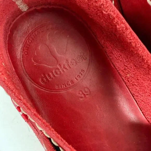 Duckfeet Himmerland Mary Jane Flats Women´s 8 Red Leather Buckle Round ToeDescriptionCrafted for timeless elegance and comfort, the Duckfeet Himmerland Mary Jane Flats are a versatile addition to any wardrobe. These red leather shoes feature a classic round toe and a secure buckle closure, ideal for a range of occasions from casual outings to business settings, and even for travel. The adjustable strap ensures a personalized fit, while the durable rubber outsole provides reliable traction. With their synthetic lining and leather insole, these flats prioritize your comfort without compromising on style. The solid red color and subtle logo accents give these shoes a polished look that´s easy to pair with any outfit. Whether you´re stepping out in the spring or settling in during the winter, these Duckfeet Himmerland flats are designed to carry you through every season with ease.Product Detail• Brand: Duckfeet• Type: Flats• Color: Red• Condition: Pre-OwnedPlease message me if you have any questions.