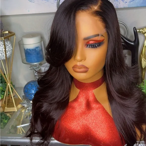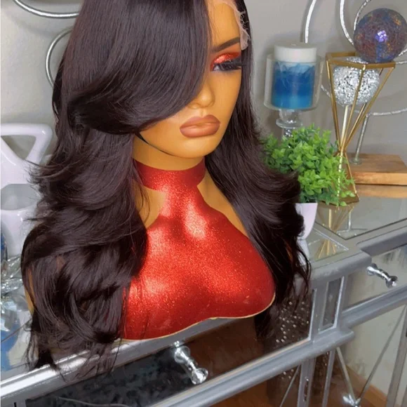 This stunning black wig features long, flowing waves that add volume and glamour to your look. The side-swept bangs provide a touch of sophistication, while the glossy shine and silky texture ensure a natural appearance. Perfect for enhancing your style with elegance and dimension.