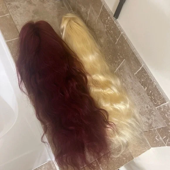 Brand new wigs never worn or washed24 inches pre plucked and bleachedI just need to stick with extrusions I can’t figure out wigs.If I can find the free gift you can have it !shipping from GAPrice and listing is for both wigs.