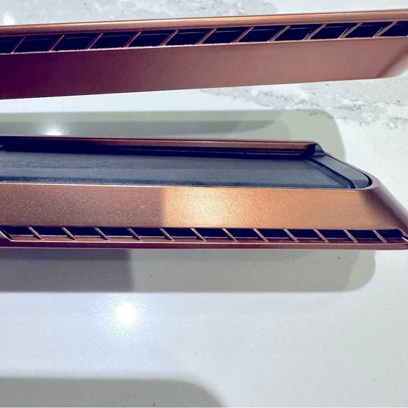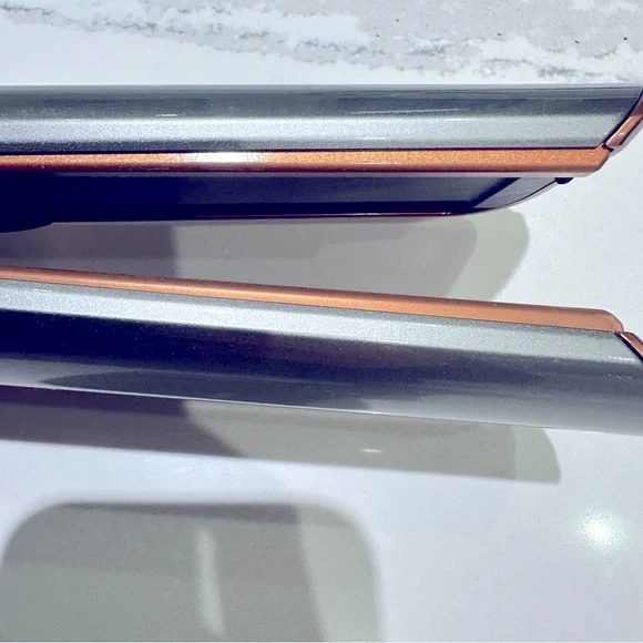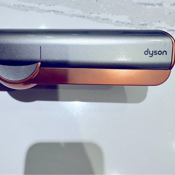 Dyson Airstrait™ straightener (Nickel/Copper)Straightens from wet to dry, simplifying your routine.Natural straight finish.Wet to dry straightening, with air. No hot plates. No heat damage.⁴Reduces time spent drying and styling by an average of 25%.⁺Powerful, directional airflow smooths and aligns hair.New without box.