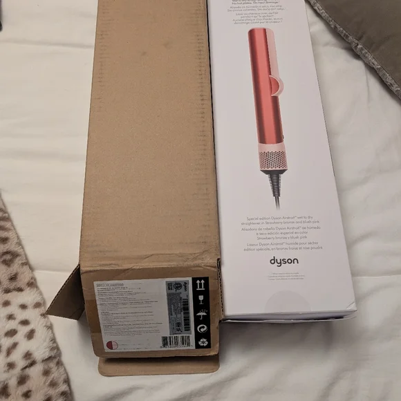 Sleek Dyson hair styling tool. Elegant design with a modern touch. Perfect for styling needs. Used by only me about 10 times before realizing it´s not great for my hair type. one small scuff on the cord adapter otherwise looks great! I kept the original box including shipping box.
