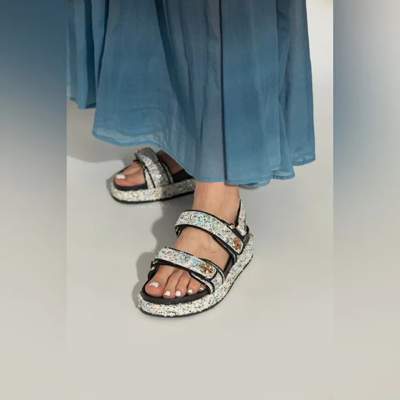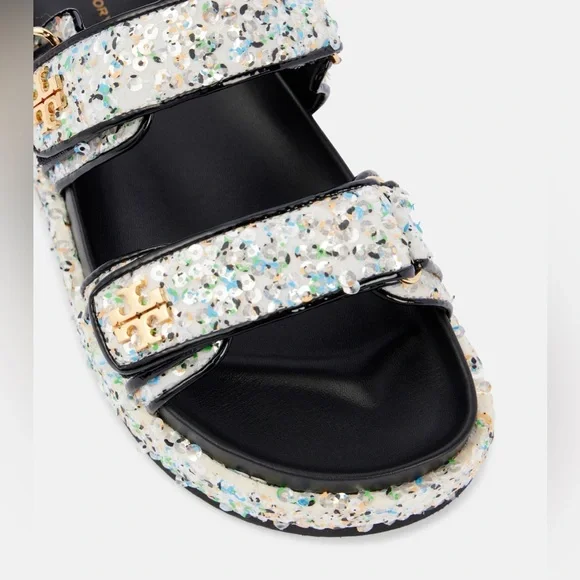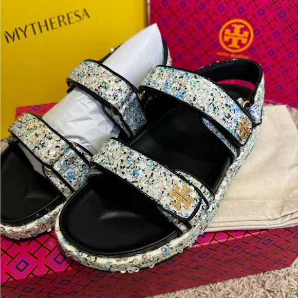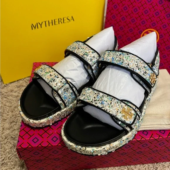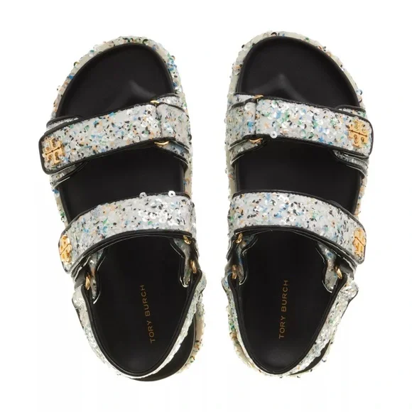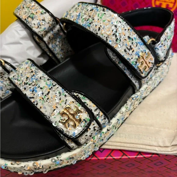 NEW! Tory Burch Kira Sport Sandals in Sequined leather Multicolor