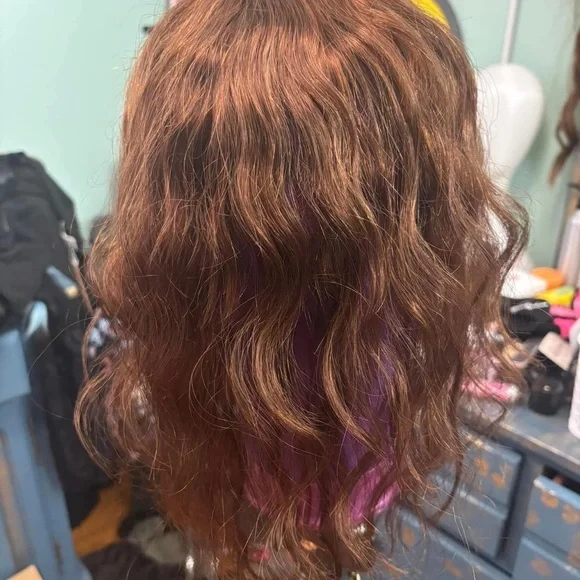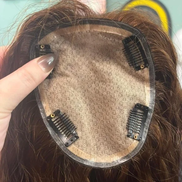 ❤️Auburn natural wave topper5x5 silk baseWavy14 inchesIndian human hair4 clips