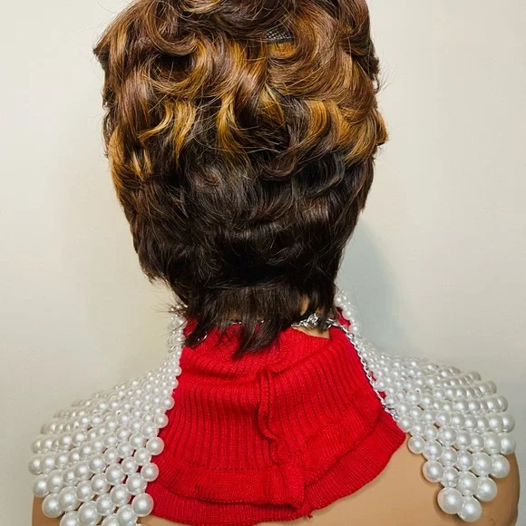 This unit may require restyling or hand styling out of the package to have it reflect the listing photos. Each wig is 100% brand new and never has been worn, It is cut and styled prior to packaging and because of this conditioning spray, hair mousse, and some shine is added to the item for easy styling right out of the package for your convenience. We put our personal touch on each item to be sure you receive the bestDue to camera lighting, the wigs color might slightly be differentWhat to know about this custom WigHair material: 100% virgin human hairWig type: 13*4 lace frontal wigHair color: highlight gold and coffee brown Hair density: 150%Dye-able: Yes, you can dye and bleach the hairHair length: 6 inchTexture: straight/curlCap size: Medium with combs and adjustable straps on the insideLace color: Medium brown (Transparent and light brown can be customized)Lace type: Swiss laceCan be styled as a photo: YesAll wig units are final sales, No returns are accepted. Some wigs are ready to ship within 3-5 business days while some will require. 2-3 weeks for processing time and delivery as these units are in high demand. Due to camera lighting, the wig´s color might slightly be different.