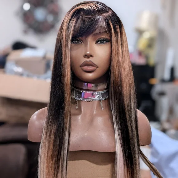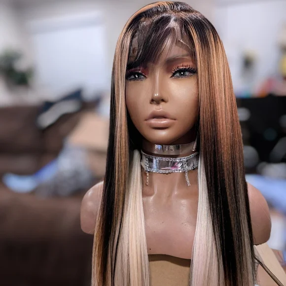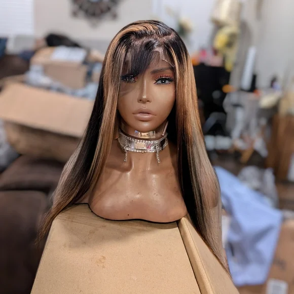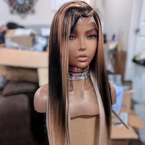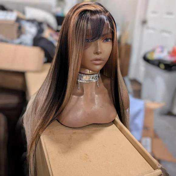 Super cute custom-made ready to ship Peruvian human hair silkie soft straight long. 30 to 32 inlace wear and goplucked hairline bleach knots full baby hairs come with side part...