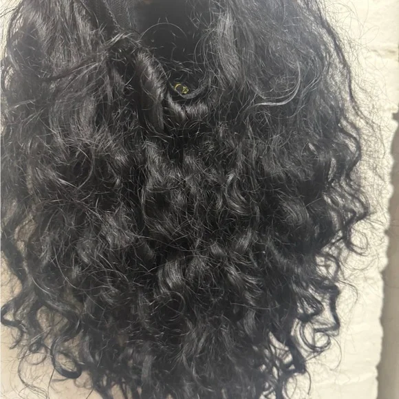 Enhance your look with this sleek black hair extension. Perfect for adding volume and length. Ideal for any occasion. Can be worn curly or straight. The absolute best human hair quality. Looks very natural. Worn for a wedding.