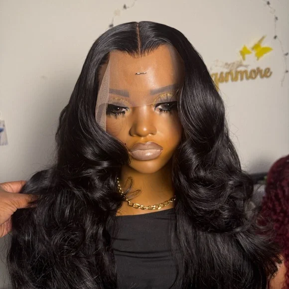 Experience elegance with the Black Wavy Lace Front Wig. Perfect for any occasion, this wig offers a natural look with its deep black color and soft waves.