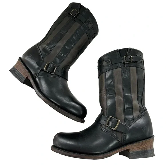 FRYE Engineer Americana Black Grey Stars & Stripes 150 Anniversary Boots 8