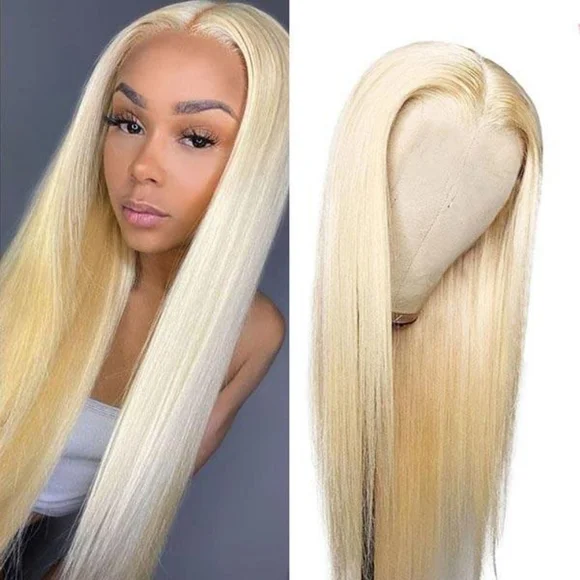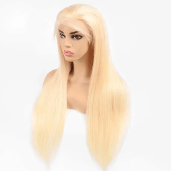 100% Unprocessed Straight Human Hair; Grade 12A 613 Honey Blonde 13x4Lace Front Wigs Human Hair Straight Glueless Human Hair Lace Frontal Wig Pre Plucked with Baby Hair High DensityFree parting; can be parted any way180% density full & thickHair color: Honey Blonde Lace Color: invisible lace matches all skin colors wellLength:20, 26, 30 inches Cap size: Average cap size 22-22.5".4 combs and adjustable strapsAll sales are final!
