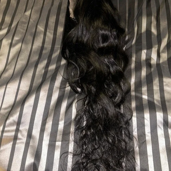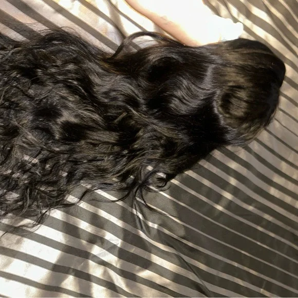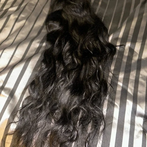Enhance your look with this luxurious black wavy hair extension. Perfect for adding volume and style.