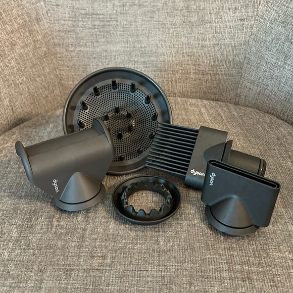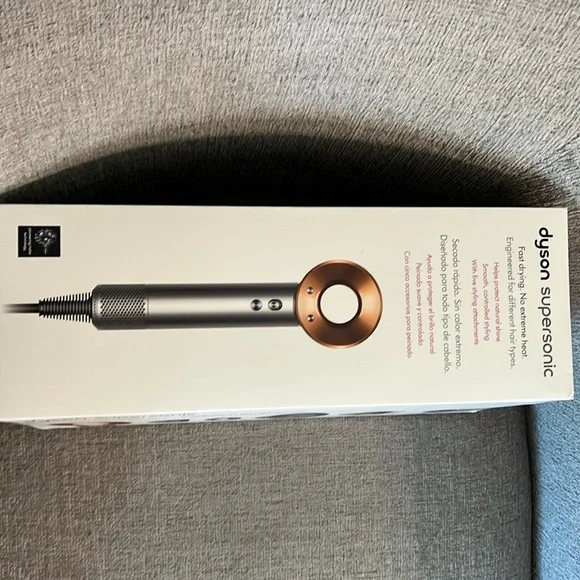Dyson Supersonic hair dryer with attachmentsBrand New Dyson Supersonic Hair Dryer• Retail is $500 | Send offers or ask questions• Color: Nickel/Copper• What´s Included: Dyson Supersonic Hair Dryer, Styling Concentrator, Diffuser, Wide-Tooth Comb, Gentle Air Attachment, Flyaway Attachment and BONUS hairdryer stand Experience fast drying with the Dyson Supersonic Hair Dryer in sleek gray. Engineered for balance and precision, this dryer protects hair from extreme heat damage while enhancing shine.