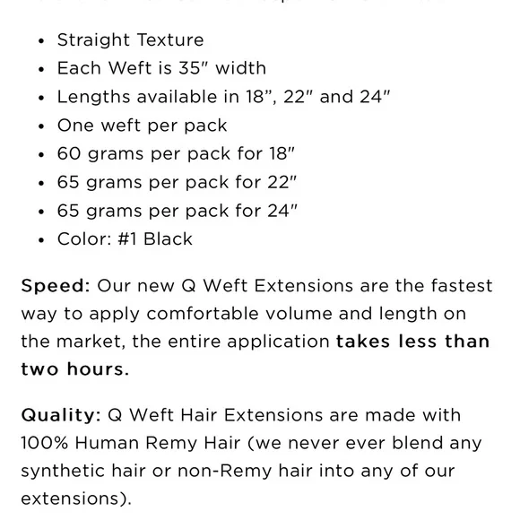 black straight Q weft extensions 24 inch