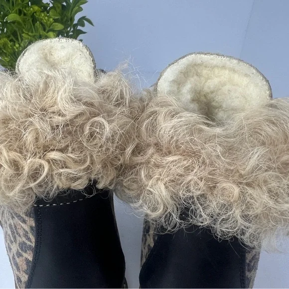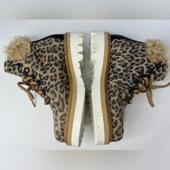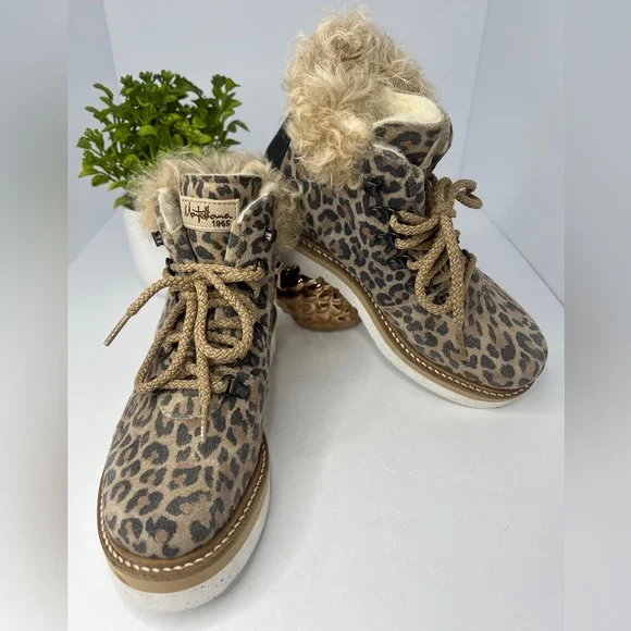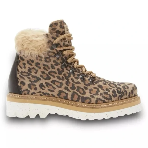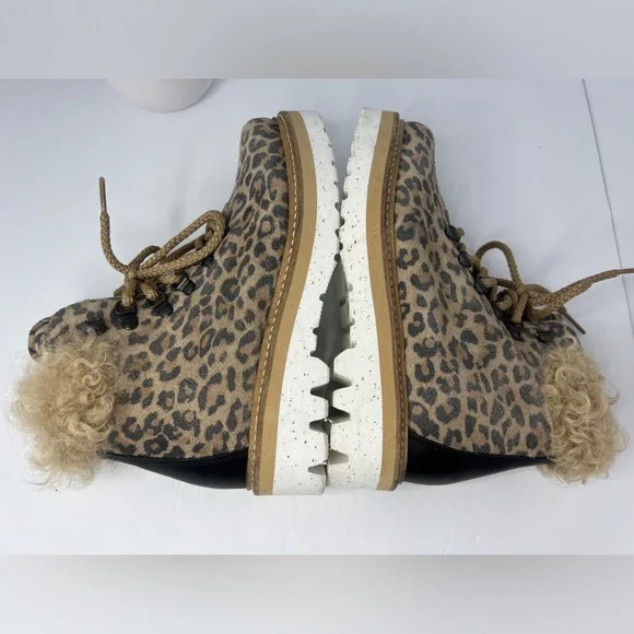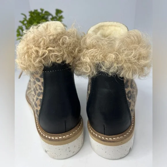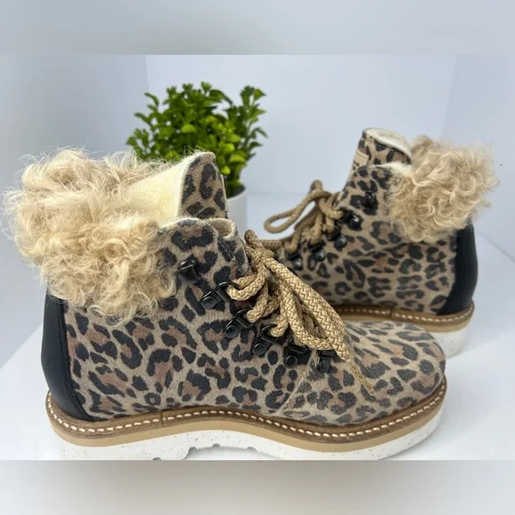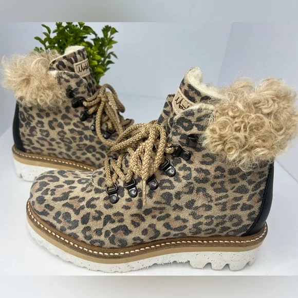 NEW La Montelliana Livia Genuine Shearling Lined Leopard Hiking Boot Size US 5