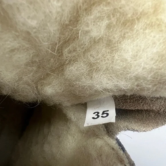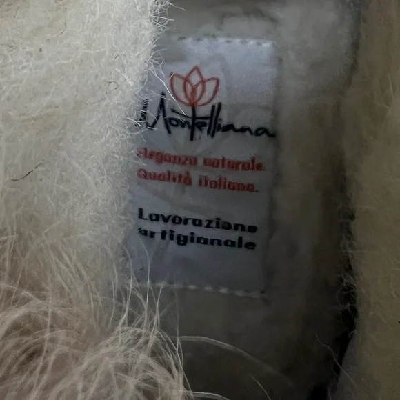 New, never worn! La Montelliana Livia Genuine Shearling Lined Leopard Hiking Boot.Size US 5 / UK 35. Smoke free home. Animal spots bring wild style to this rugged-yet-refined hiking boot lined with plush genuine shearling that offers cozy warmth and comfort. 1 3/4" heel; 1 1/4" platform (size 38.5) 4 1/4" shaft Removable insole Leather and genuine shearling (Australia) upper/genuine shearling lining/synthetic sole Made in Italy