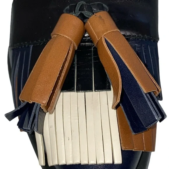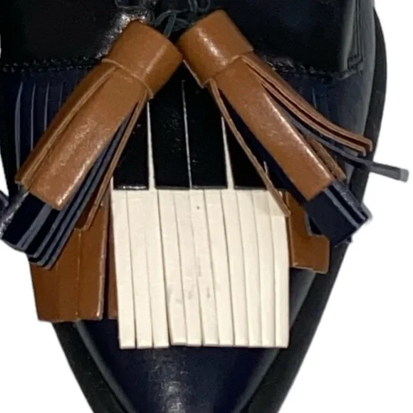 Tod´s Black Brown Cream Leather Fringe Loafer Pumps Size 7.5/37.5