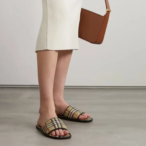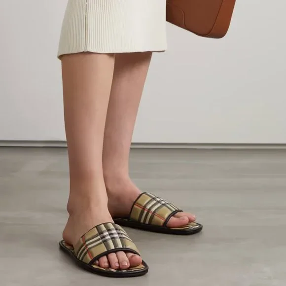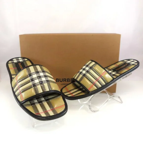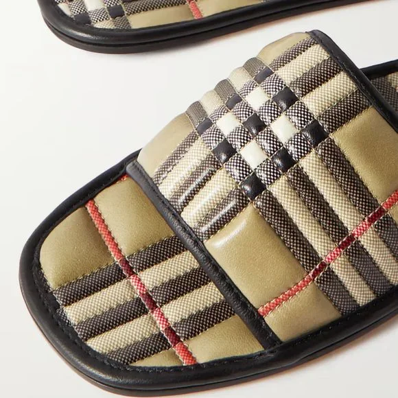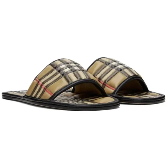 NIB$650 BURBERRY Alixa Quilted Lambskin Check Flat Slide In Archive Beige 35 5