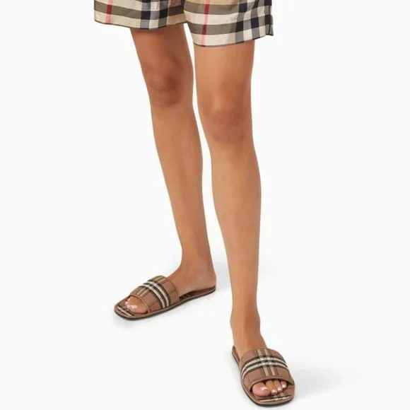 NIB $650 BURBERRY Alixa Lambskin Check Flat Slide SandalsSize: 35 (5)Color: Archive BeigeMade in ItalyBrand New with Original box!100% AUTHENTICQuilted lambskin slip-on sandals featuring check pattern in beige, red, and black. Burberry´s unmistakable slides are replete with house codes. They´re defined by their quilted leather and signatures checks that have been a staple since the ´20s. Wear yours as part of a neutral outfit.Lambskin upperOpen square toeLeather logo patch at padded footbedLeather sole in beigeBrand New from Saks Fifth Avenue!! Strikeout to prevent illegal returns. SHIP FAST ON SAME OR NEXT DAY!