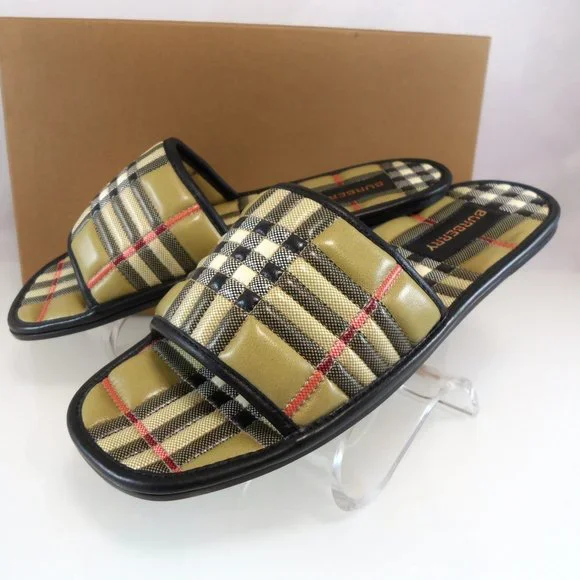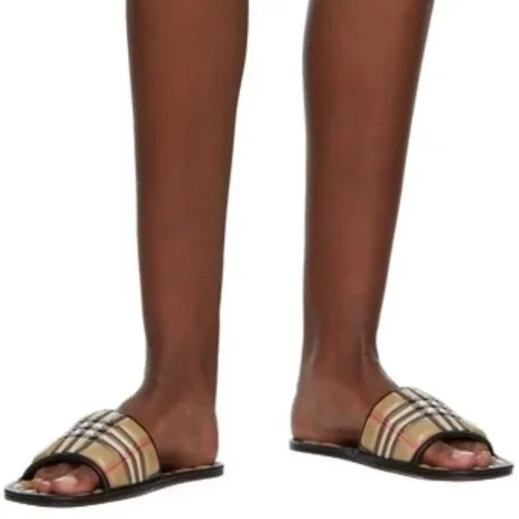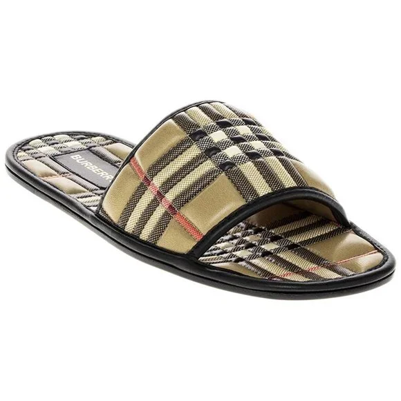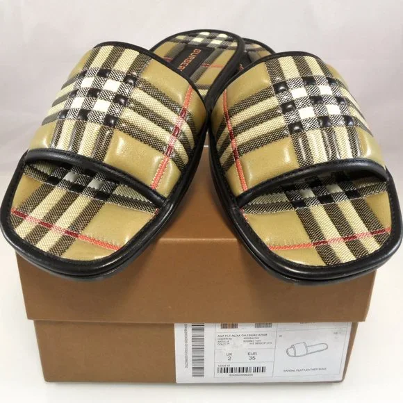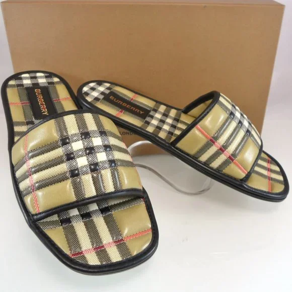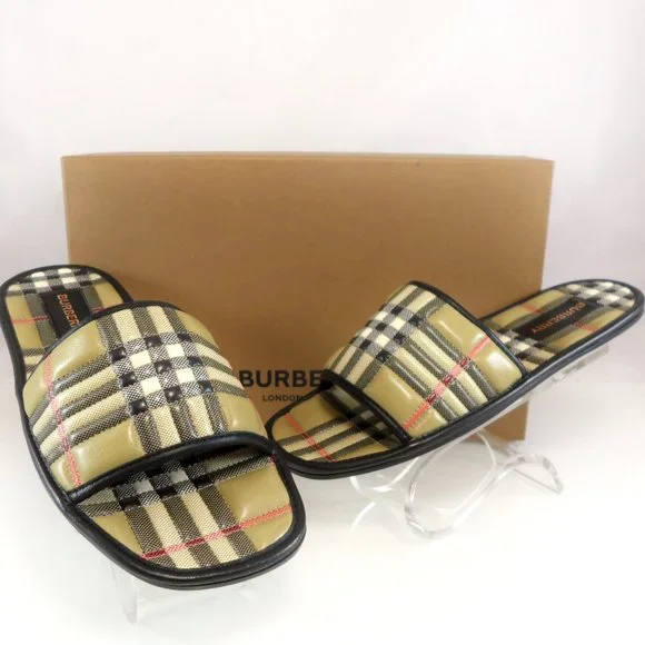 NIB $650 BURBERRY Alixa Lambskin Check Flat Slide SandalsSize: 35 (5)Color: Archive BeigeMade in ItalyBrand New with Original box!100% AUTHENTICQuilted lambskin slip-on sandals...
