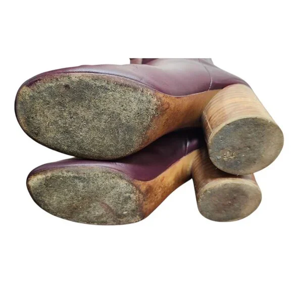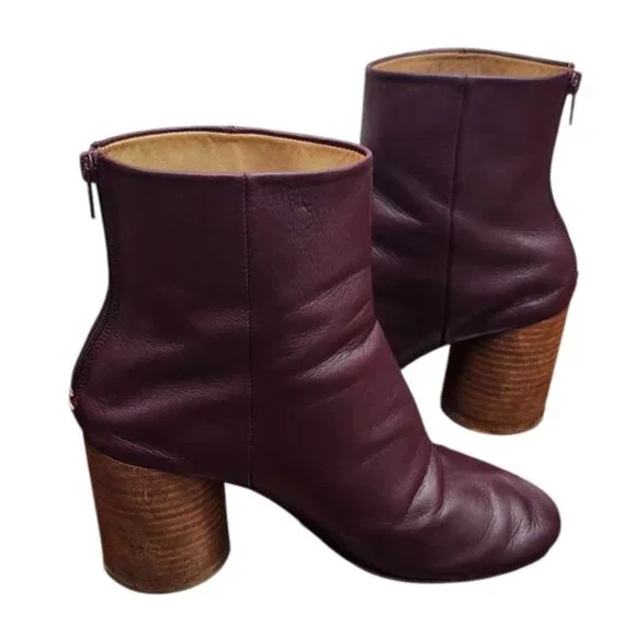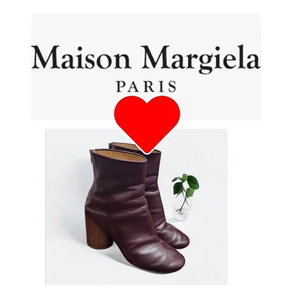 Vintage Maison Martin Margiela Tabi Leather Ankle Boots Size EU 37/US 6.5The product is a pair of vintage Maison Margiela Tabi leather ankle boots in a burgundy color, size EU 37/US 6.5. These stylish booties are designed for women and feature a classic ankle shaft style, making them versatile for both casual and formal occasions. Crafted from high-quality leather, these boots have a timeless appeal and are a must-have for any fashion-forward individual looking to add a touch of luxury to their wardrobe.Size: EU 37/US 6.5Color: dark burgundy Material: leatherHeel height: 3´´* Indoor/outdoor wearThe wearing photo is borrowed from the store. It’s in a different color, but it can serve as a reference for the silhouette.Color in photos may slightly differ from actual item due to lighting and/or screen settingGood pre-owned condition. Normal signs of wear, as shown in photos.Reasonable offers are welcome!Any questions/concerns please state in direct messages.