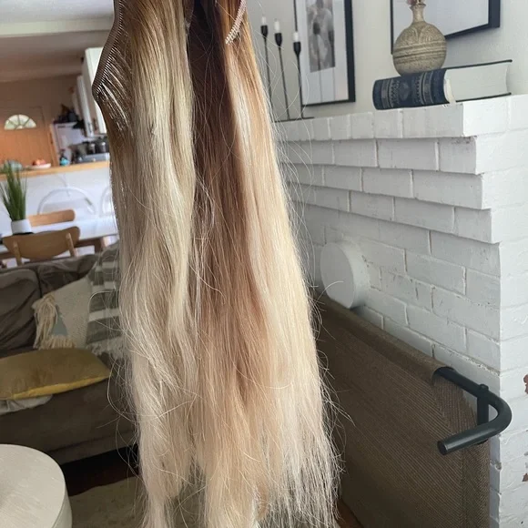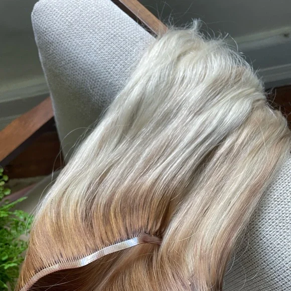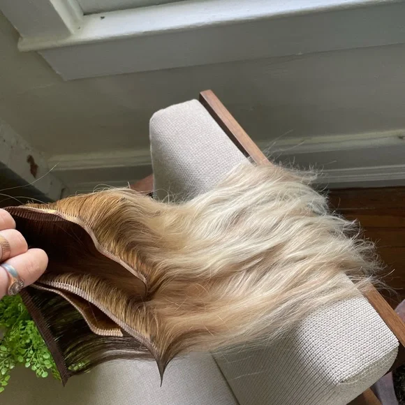 These beautiful blonde extensions were worn for 3 days total and toned by my hairstylist. They are in perfect condition. I paid $600 for these - 4 pieces total