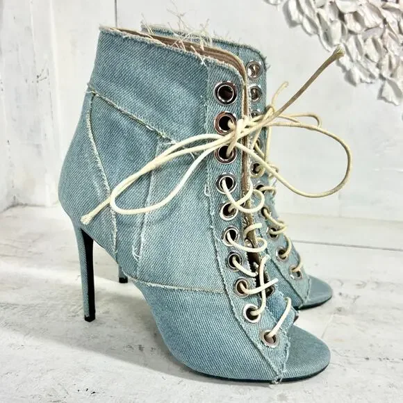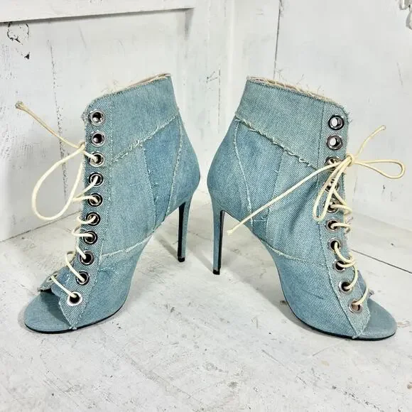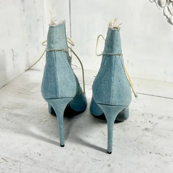 Barbara Bui Denim Lace-Up Open Toe Stilettos Ankle Boots Light Blue Women´s 36.5 / 6MSRP: $700Item condition: gently used very good condition, worn 1-2 xheel 4´´no boxBrand: Barbara Bui Size: 36.5Color: Light blueLace-up closureOpen toeComfortSilver grommets.Stilettos heelAnkle shaftDenim materialPair with skinny jeans and a fitted white blouse for an elevated denim-on-denim moment.festive, concert, y2k, preppy, streetwear, runway, stylish, trendy, going out, city girl, party, night out, leather, heels, office, work, career, pointed toe, ankle boots, party, minimalist, goth, dark academia, whimsygoth5 star. seller - 5.000+ items sold - Fast shipping - Closets of influencers and fashion collectors-Shop with confidence - Smoke-free clean storage environment -Bundle and Save! - New arrivals every week