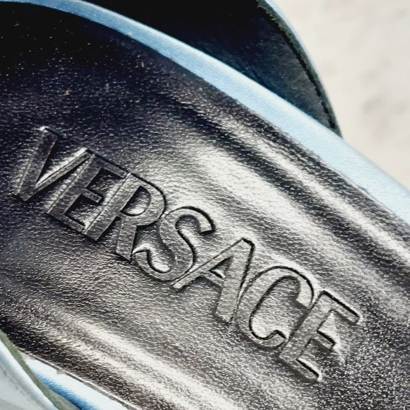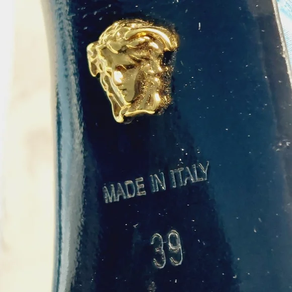 newstraps have been replacedThe iconic Medusa head motif is synonymous with Versace and is an ever-present feature in the brand’s collections. Made in ItalyCompositionLining: Calf Leather 100%Sole: Calf Leather 100%Outer: Fabric 100%size eur 39/ us 9