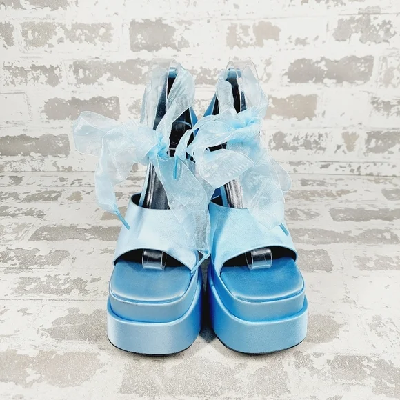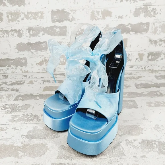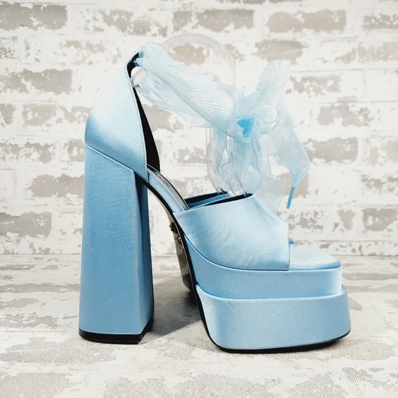 New Versace Medusa Baby Blue High platform sandals H176
