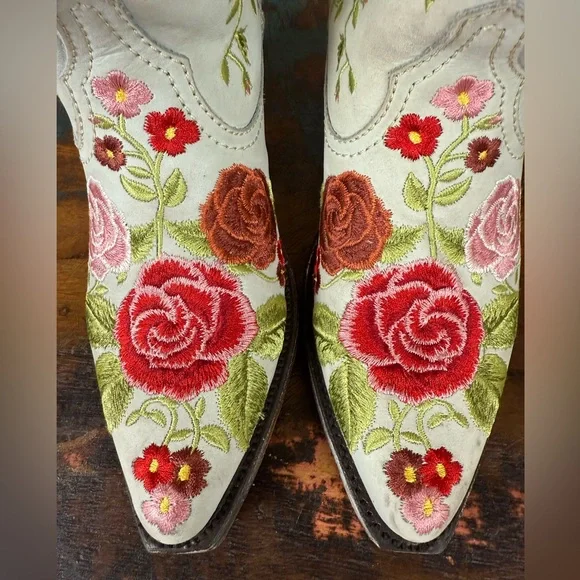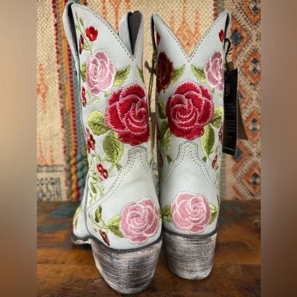 Liberty Black ONE OF A KIND nobuck gray leather boots with floral embroidery in red, pink, rust and green. Hand made in Mexico. New with tags.