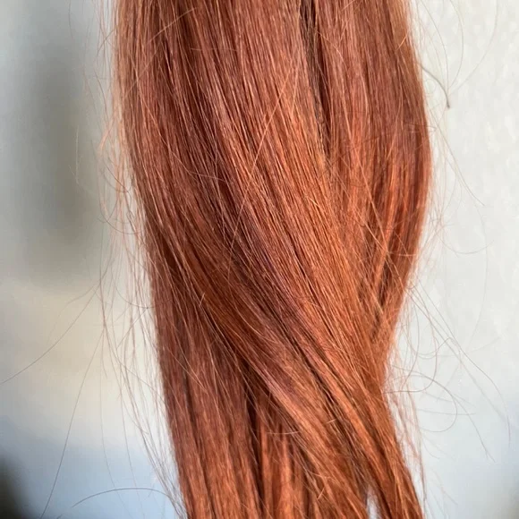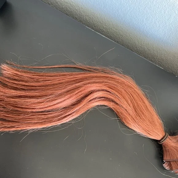 Auburn Human Hair Extensions Only worn for 2 days 8 wefts full set About 20 inches Had these put in at Inspire Hair Salon and Extension Bar and the stylist put too many in and dyed my hair wrong so I had them removed. I don’t see myself using them again since I no longer have auburn hair. They can be easily turned into clip in or tape in if desired and can be dyed.