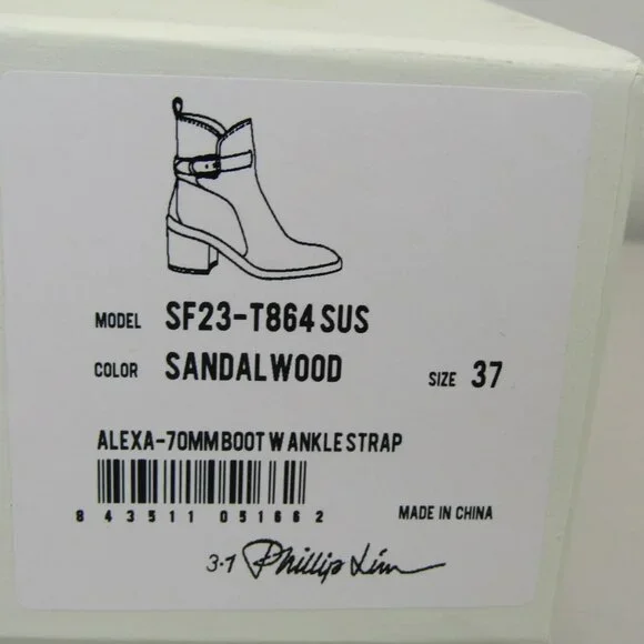 NEW 3.1 Phillip Lim Women’s Alexa Buckle Ankle Strap Booties – Brown Size 6 Statement HeelDescription:New. Elevate your style with the Alexa Booties by 3.1 Phillip Lim, a bold and sculptural silhouette featuring a rich brown leather upper, adjustable ankle strap with buckle, and modern block heel. A fashion-forward choice perfect for dressing up denim or adding edge to feminine dresses. Comes in original distressed box; shoes show no visible defects—see photos.Features:Brand: 3.1 Phillip LimStyle: Alexa Buckle Ankle Strap BootiesModel: SF23-T864Size: Women’s US 6Color: BrownMaterial: Leather upperDesign: Adjustable ankle strap with buckle, rounded toe, sculptural block heelHeel Height: Approx. 2.5–3 inchesCondition: New (no visible flaws; original distressed box – see photos)Retail Price: $595 USD