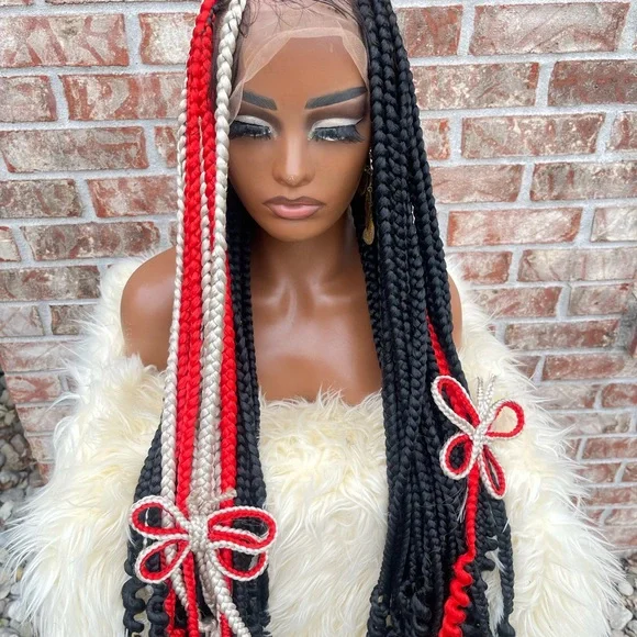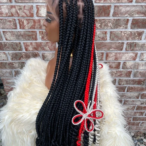 Full lace women braided wig with adjustable band ,this unit is ready to ship out !we also customize wig in any color and sizes send a message if you want a wig customize for you.